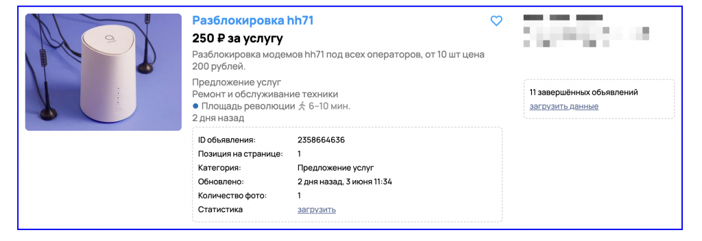 Ваши объявления будут выделены контрастным контуром, что явно отличает их от остальных объявлений списка.