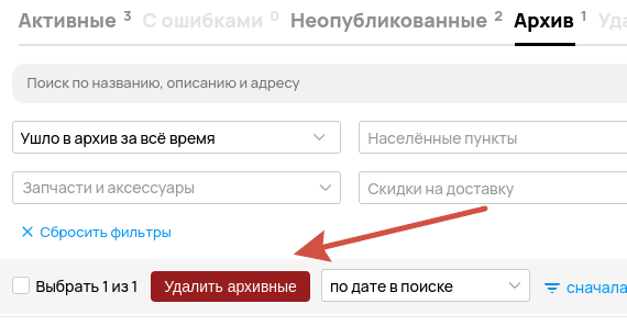 Удаление архивных объявлений