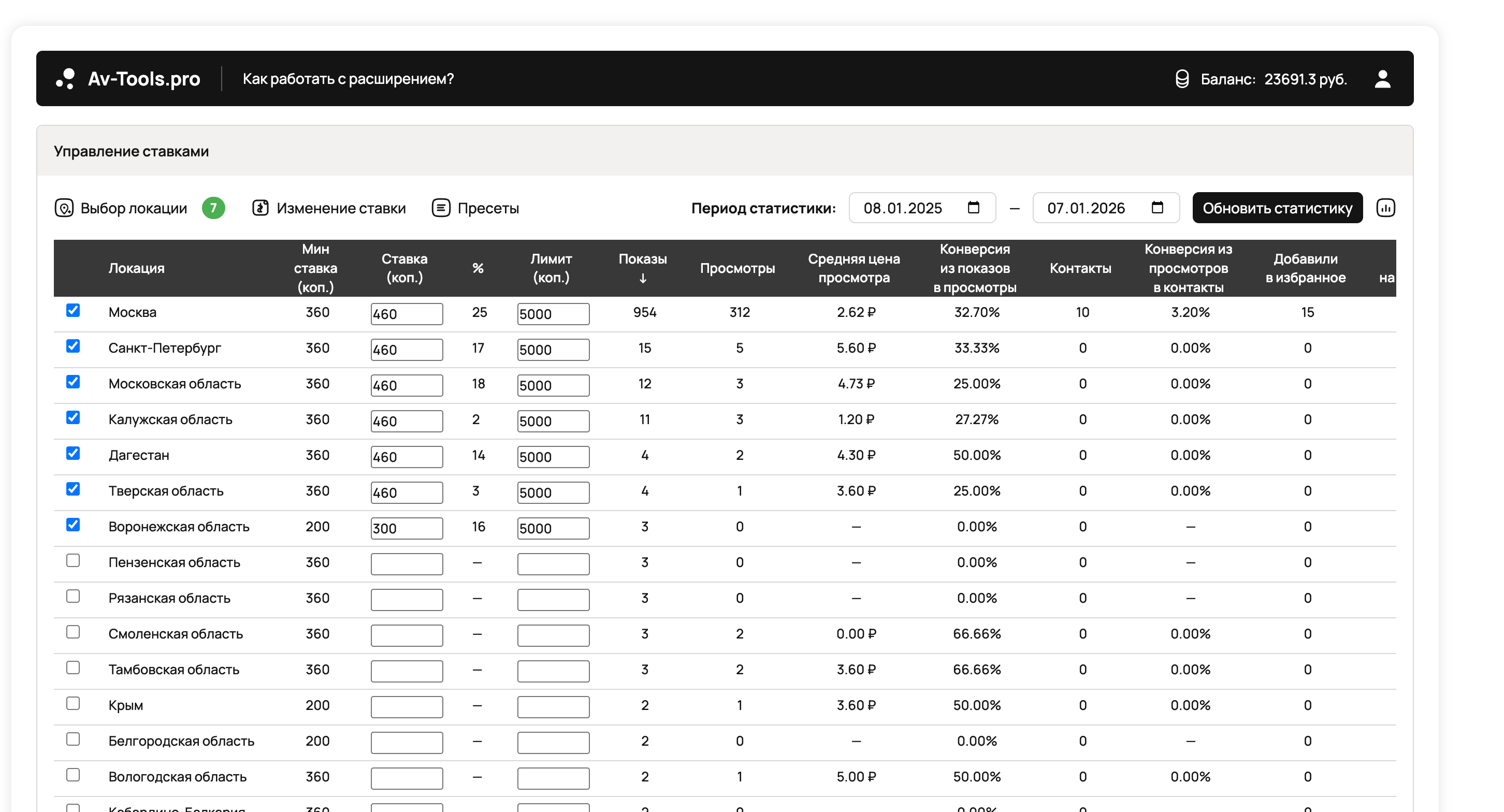Удобная настройка стоимость целевого действия у объявления по локациям + статистика по каждой локации, для понимания на какие локации стоит сделать продвижение, а где имеет смысл отключить: