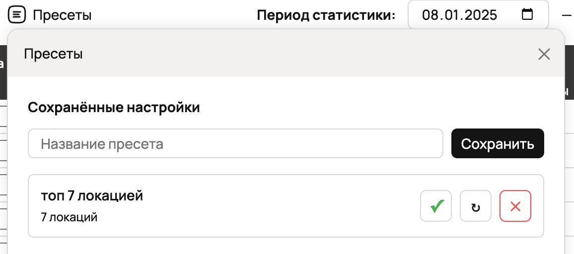 Возможность настраивать пресеты для отключения продвижения на локациях, на основе статистики по каждой локации:
